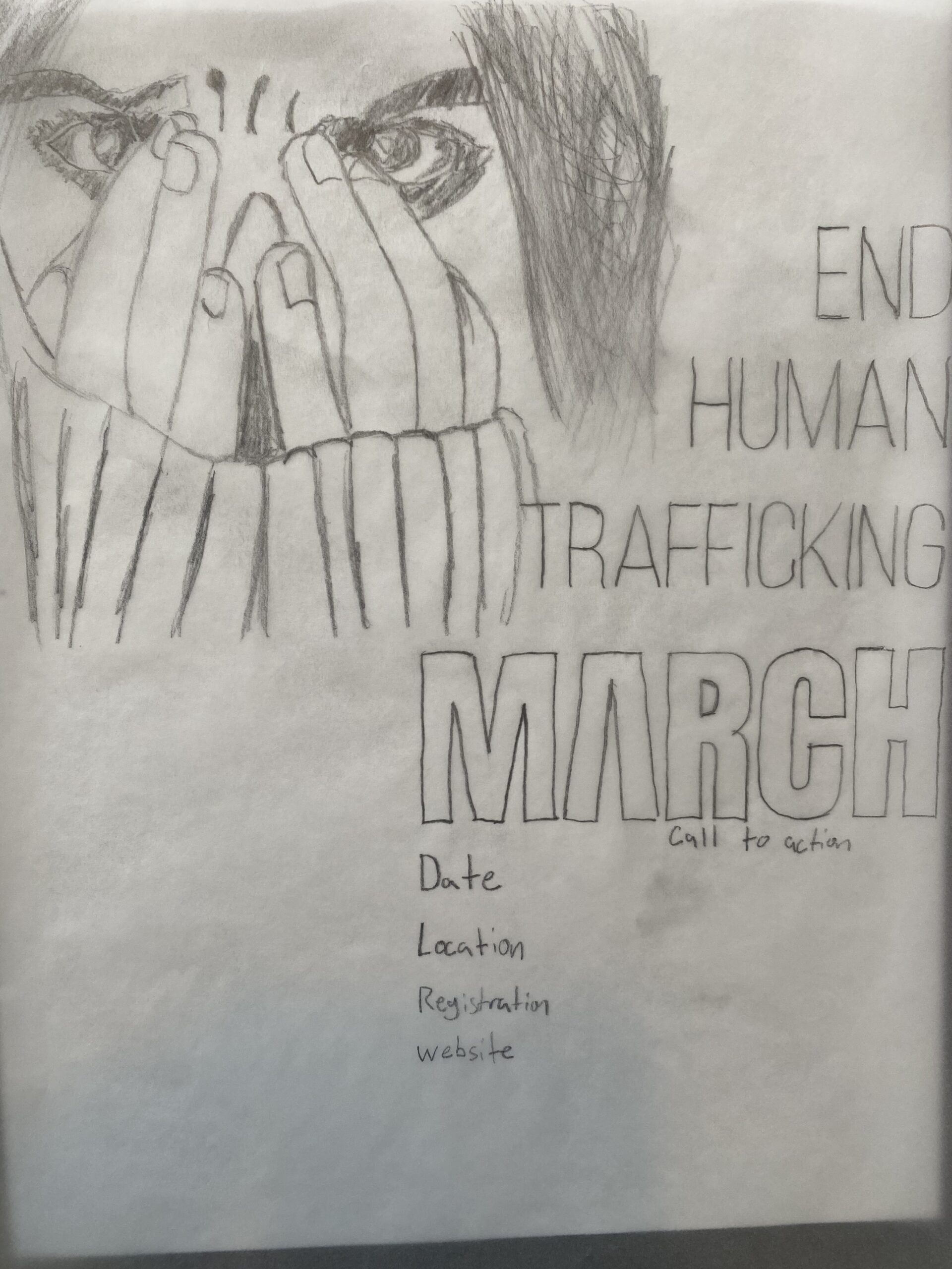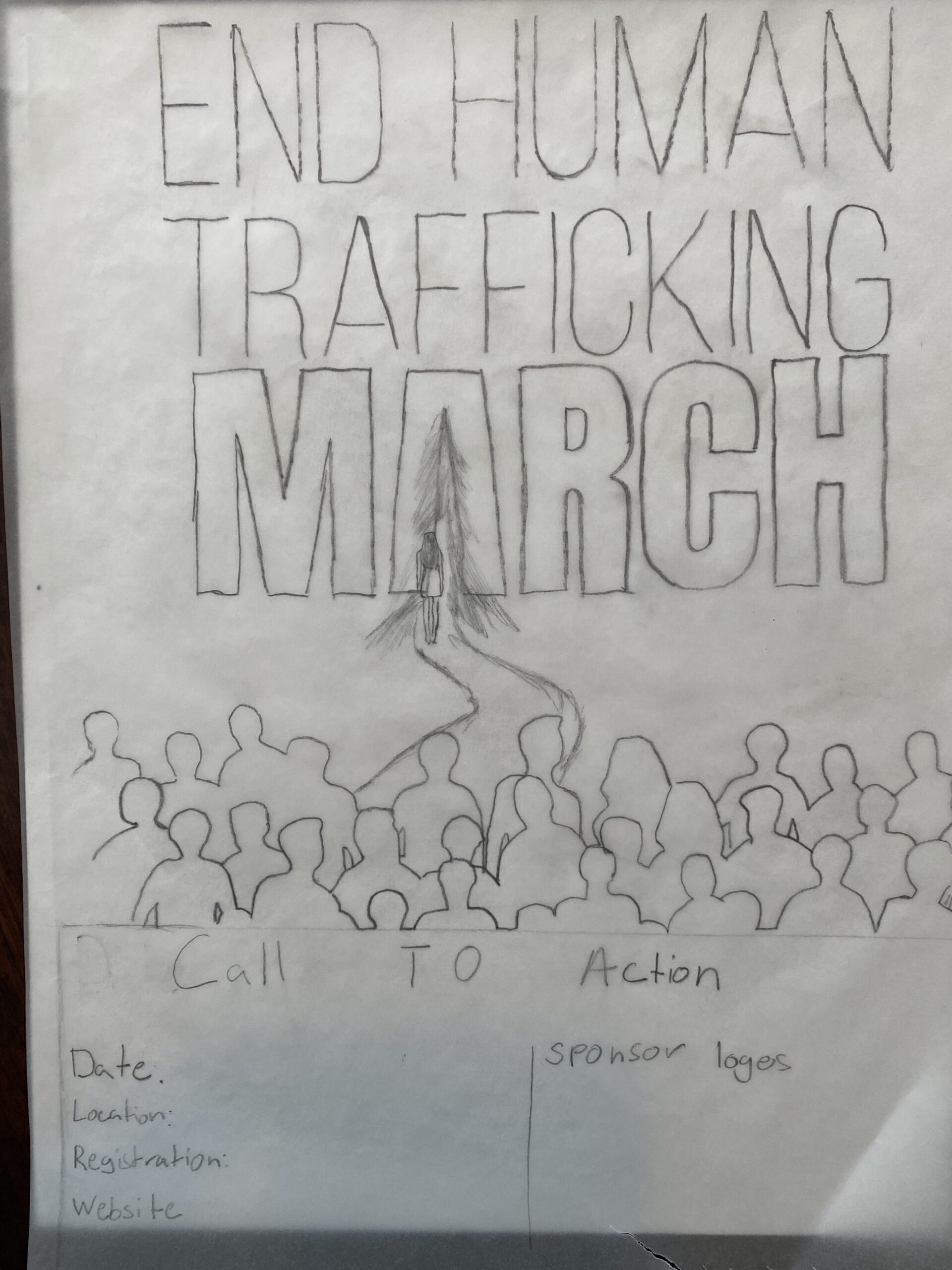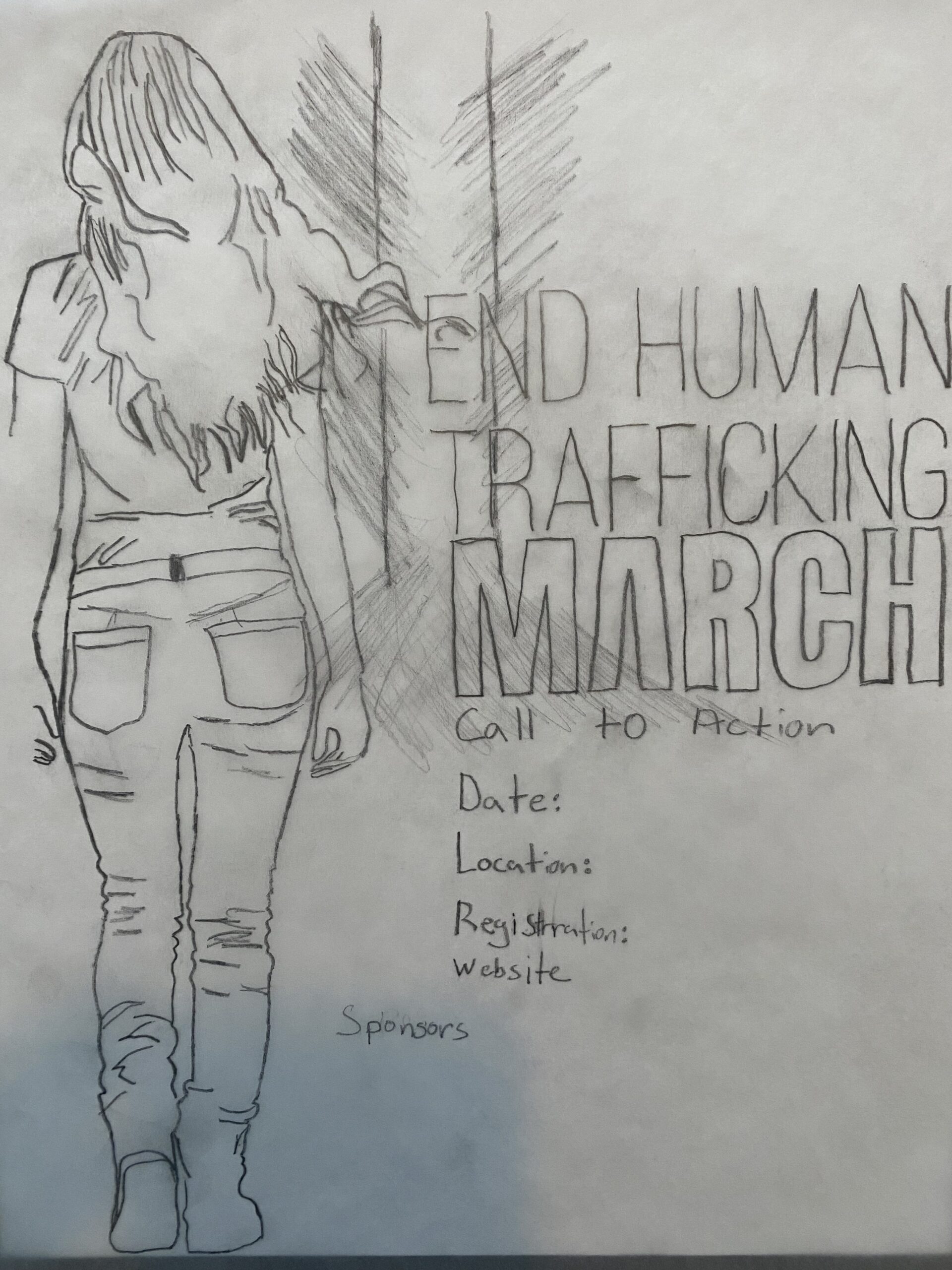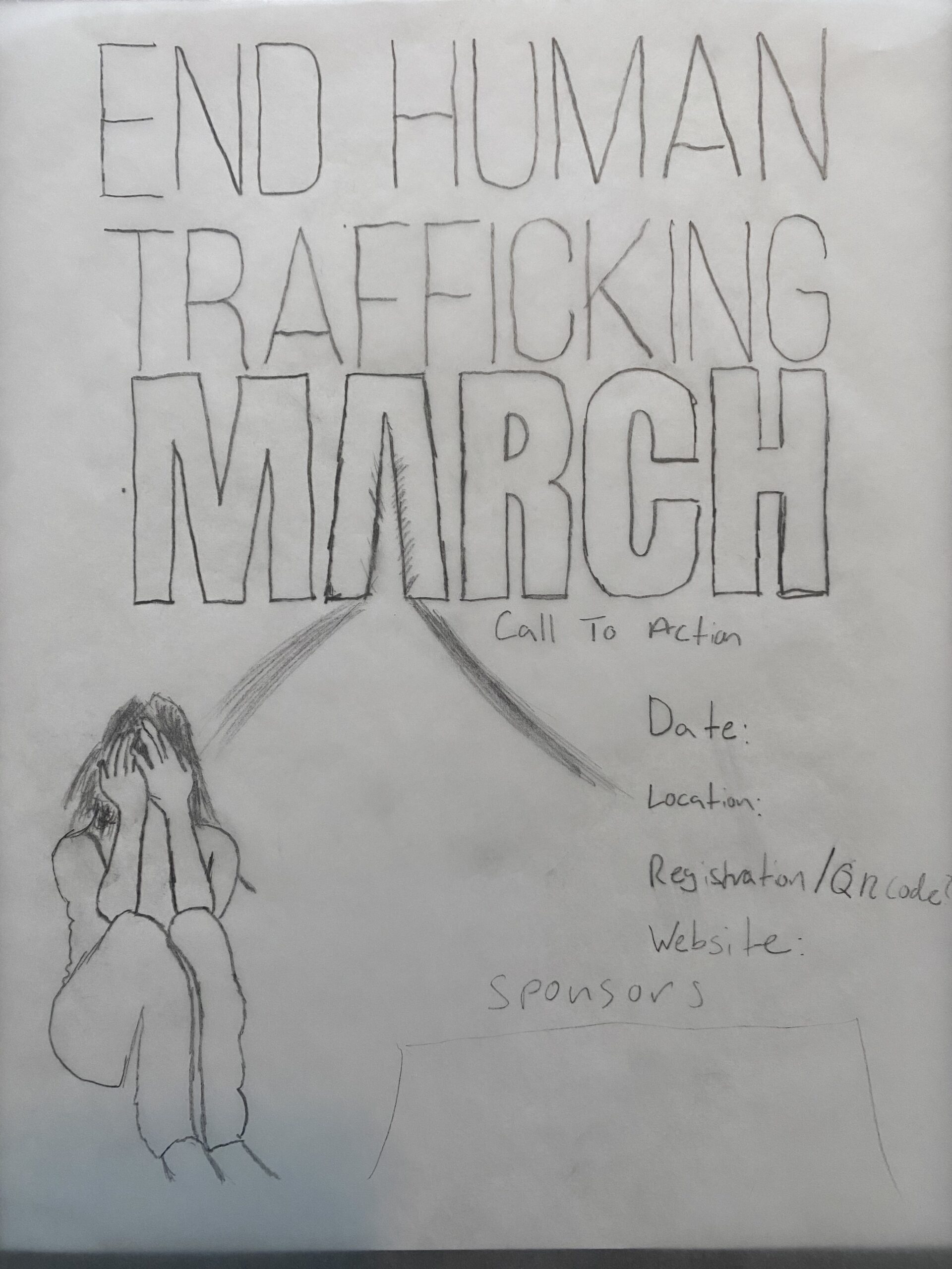 Both posters include event details sponsor recognition and a unified message, but visually they offer two different tones. One is grounded in realism and raw emotion the other is symbolic. I will be including some of my original sketches below to show how this idea took shape and developed through the design process